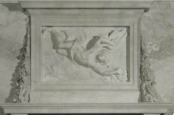 Vandaag lopen we speciaal even naar de ruimte die de Desolate Boedelkamer heet. In deze kamer werden onbeheerde nalatenschappen maar ook faillissementen afgehandeld; met man en macht deed men pogingen om overeenstemming te bereiken tussen schuldeisers en failliet verklaarden. Een ieder die de kamer betrad, liep onder een reliëf door van een gevleugeld jongetje dat naar beneden lijkt te vallen: Icarus.
