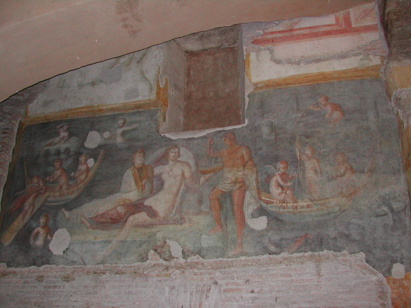 Een fresco op de wand van een van de Romeinse huizen onder de SS Giovanni e Paoo in Rome