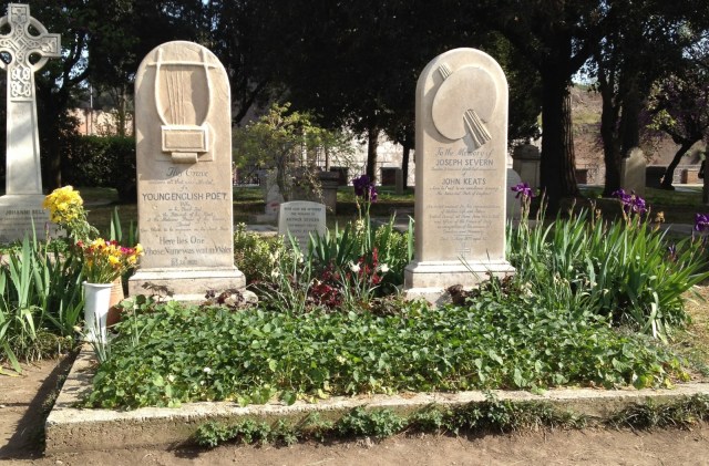 In 1821 stierf Keats. Hij wilde begraven worden in Rome en had de expliciete wens geuit dat er geen naam of datum op zijn grafsteen mocht komen. Hij wilde volstaan met de inscriptie: ‘Here lies one whose name was writ in water’, met daarboven een afbeelding van een Griekse lier waarvan 4 van de 8 snaren gebroken zijn. Shelley vond in 1822 de dood op zee toen zijn boot schipbreuk leed. Hij werd gecremeerd, waarna zijn as naar het Campo Cestio werd gebracht om een laatste rustplaats te vinden naast die andere dode dichter: John Keats.